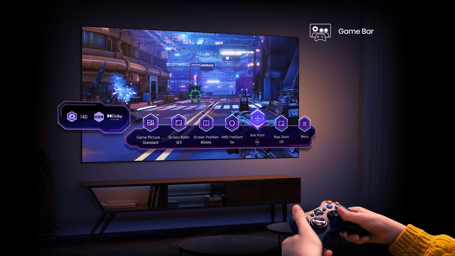 144Hz nativo com Game Mode Pro, vitória em cada frame
