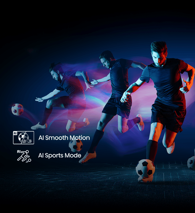 Desfrute de imagens fluidas e realistas com recursos avançados, integrados ao painel de 144Hz, tecnologia AI Smooth Motion e AI Sports Mode, o desfoque de movimento é eliminado seja em esportes ou jogos dinâmicos, cada movimento é nítido, com cenas mais reais e sem perda de qualidade.